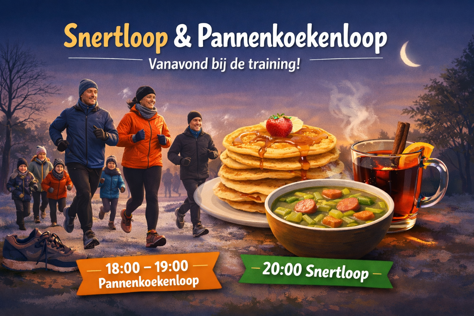 🥣🥞 Snertloop & Pannenkoekenloop – vanavond bij de training!